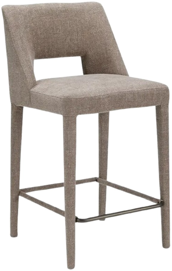 Fully upholstered in light brown performance fabric, the Joyce counter stool's cohesive silhouette exudes sophistication. The carved lower backrest adds visual lightness, while extended sides offer cradling support. Durable, stylish, and versatile for contemporary interiors.Read More