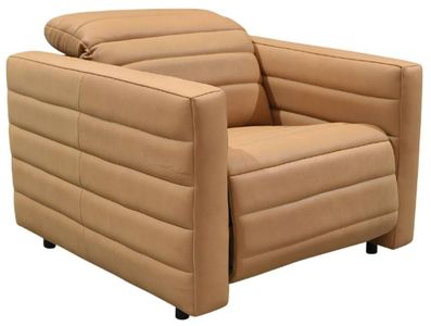Wrapped in top-grain leather, the Juno power recliner chair's sleek silhouette and horizontal channel detailing exude modern elegance. Hidden buttons effortlessly transition between positions, while the adjustable headrest offers personalized support.Read More