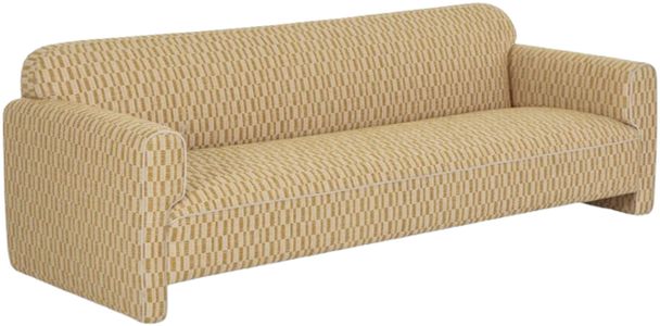 Curved Contours: Its squared side profile juxtaposes with inward-rolled arms and a gently curved back for an inviting silhouette