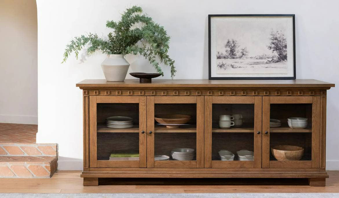 Your good taste, on display. Lillian puts a fresh face on tradition. Four glass-front doors let your dinnerware, vintage finds, or everyday essentials shine, while blackened bronze handles bring in just the right contrast. It’s a timeless piece with a clear view.Read More
