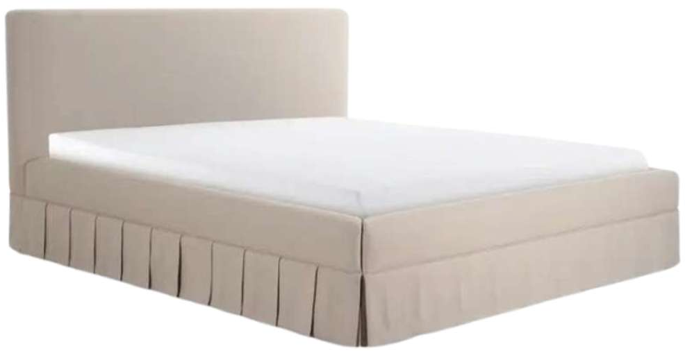 The Maren queen bed exudes a soft, feminine aesthetic, upholstered in a warm, neutral fabric and featuring a playful yet refined box pleat base reminiscent of vintage finesse, straddling the line between contemporary form and traditional finish.Read More