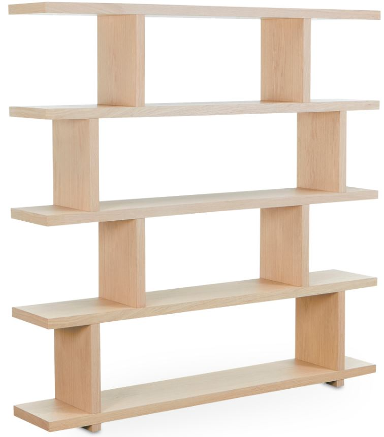 The Miri shelf's open concept and mid-century modern style make it an ideal space divider and/or bookshelf. Slide two shelving units together to create a larger seamless unit with five levels of space. Made with white oak veneer over MDF and PU lacquer, this shelf is a testament to versatility in design.Read More