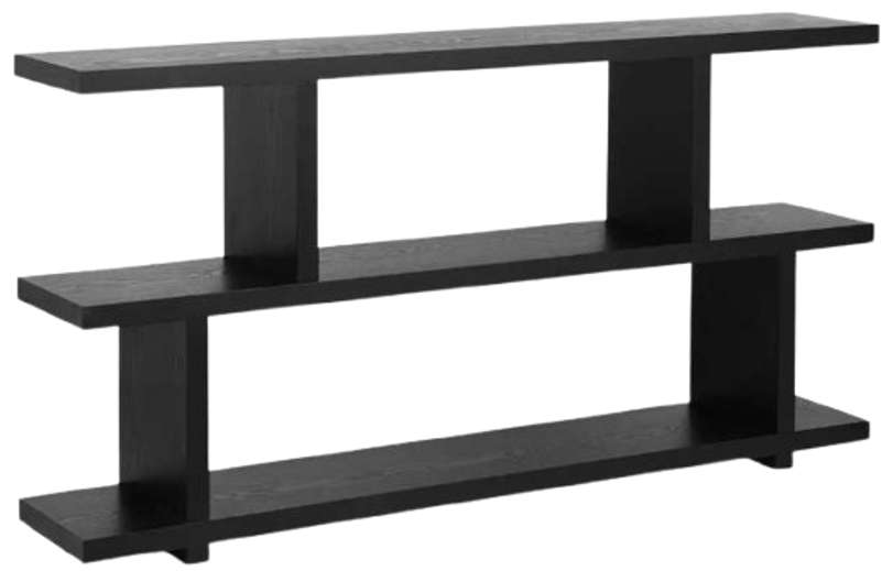 The Miri shelf's open concept and mid-century modern style make it an ideal space divider and/or bookshelf. Slide two shelving units together to create a larger seamless unit with five levels of space. Made with black ash veneer over MDF, this shelf is a testament to versatility in design.Read More