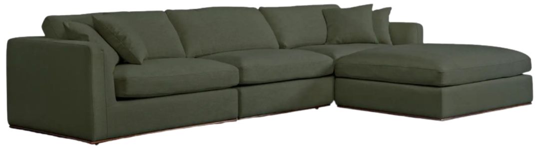 The Rue modular sectional features a generous 70% feather-fill topper within its bench seating, accompanied by toss cushions for an added layer of coziness. Its elegant silhouette is highlighted by a rubber wood base, creating a sleek floating appearance, all supported by subtle wooden legs.Read More