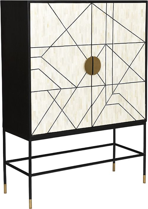 An aesthete's delight. The Shaws cabinet is a luxurious affair of solid mango wood and ornate bone veneer. Two large doors open up to an abundance of shelving space. Brass details finish off this imposing piece.Read More
