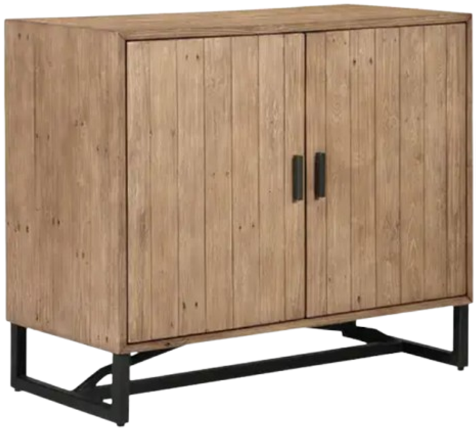 Made with solid reclaimed pine, the Sierra 2-door cabinet exhibits natural woodgrain and knot variances. Its single adjustable pine wood shelf provides ample space while a solid metal base and finished back give this 2 door cabinet its transitional design.Read More