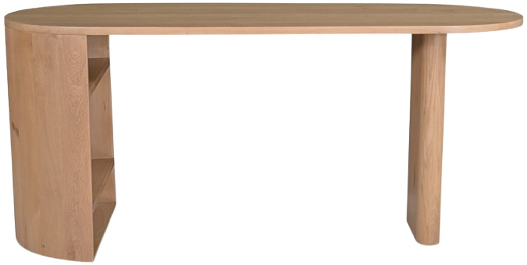 A desk that actually gets your workflow. The Theo desk pairs a curved profile with open shelving and plenty of room to spread out. Made from solid oak with a semi-gloss finish, it celebrates the beauty of natural wood—knots, grains, and all.Read More