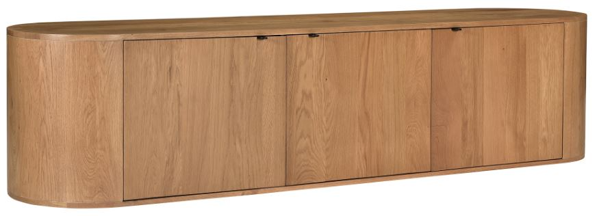 Let your media setup finally match your style. The Theo media bench brings sculptural curves and natural oak warmth to your living space—or your entryway. With three soft-close doors hiding a single long shelf, it’s made for easy storage and clean lines.Read More