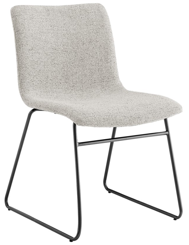 Modern Casual Side or Dining Chair - versatile at any space! In medium back and fabric upholstery, the Bruce chair collection provides comfort and style around dining room, bedroom or the entryway. The sled leg frame is powder coated steel that looks sleek and contemporary. The top stretcher provides extra sturdiness to the construction. Easy Assembly. Available in Pebbled Cream and Pebbled Charcoal. Also available in other color and PU options.