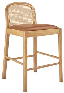 The centerpiece of your bar space! Standing at 35.5" high, the Donna Counter Stool draws vintage inspiration with its arched back seat adorned with cane webbing, boasting an elegant contrast to the nettlewood frame. The seat and legs are crafted from solid wood. Easy Assembly. Available in Borneo Chocolate PU and Casa Black PU.