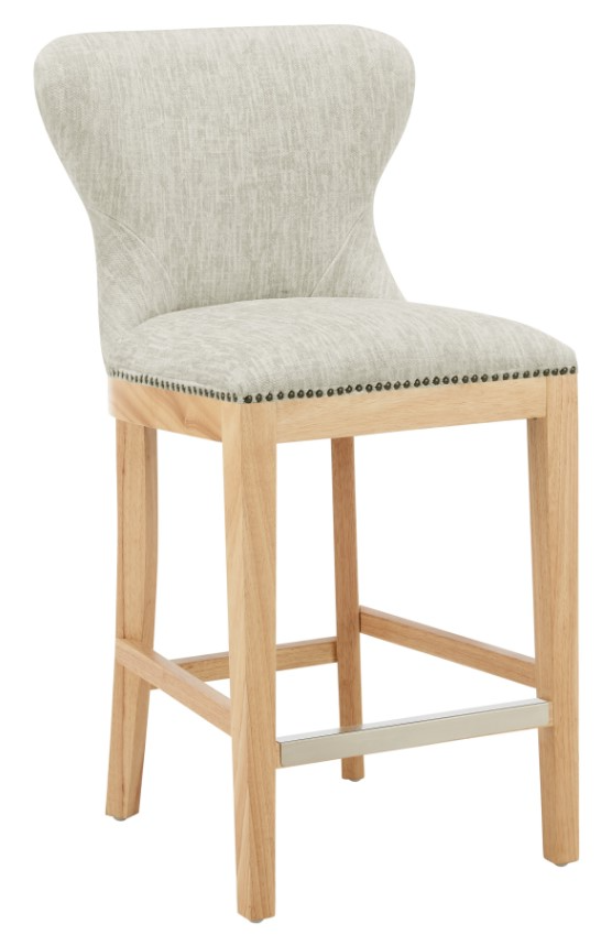 Set a modern farmhouse tone in your dining area with the Dorsey Counter Stool. With its Taupe fabric upholstery embellished with bronze nailheads and the Natural legs, it will fit right into any transitional or contemporary setting. Fully assembled, available in Pasadena Beige and Pasadena Taupe and also in other leg finishes and upholstery options.