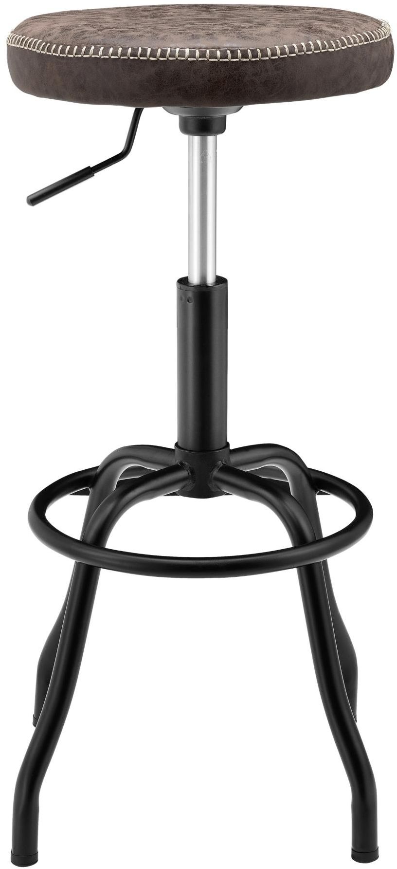 Sturdy, yet lightweight in design. Faux-leather seat covers with charming trim. Adjustable seat height 25-29".