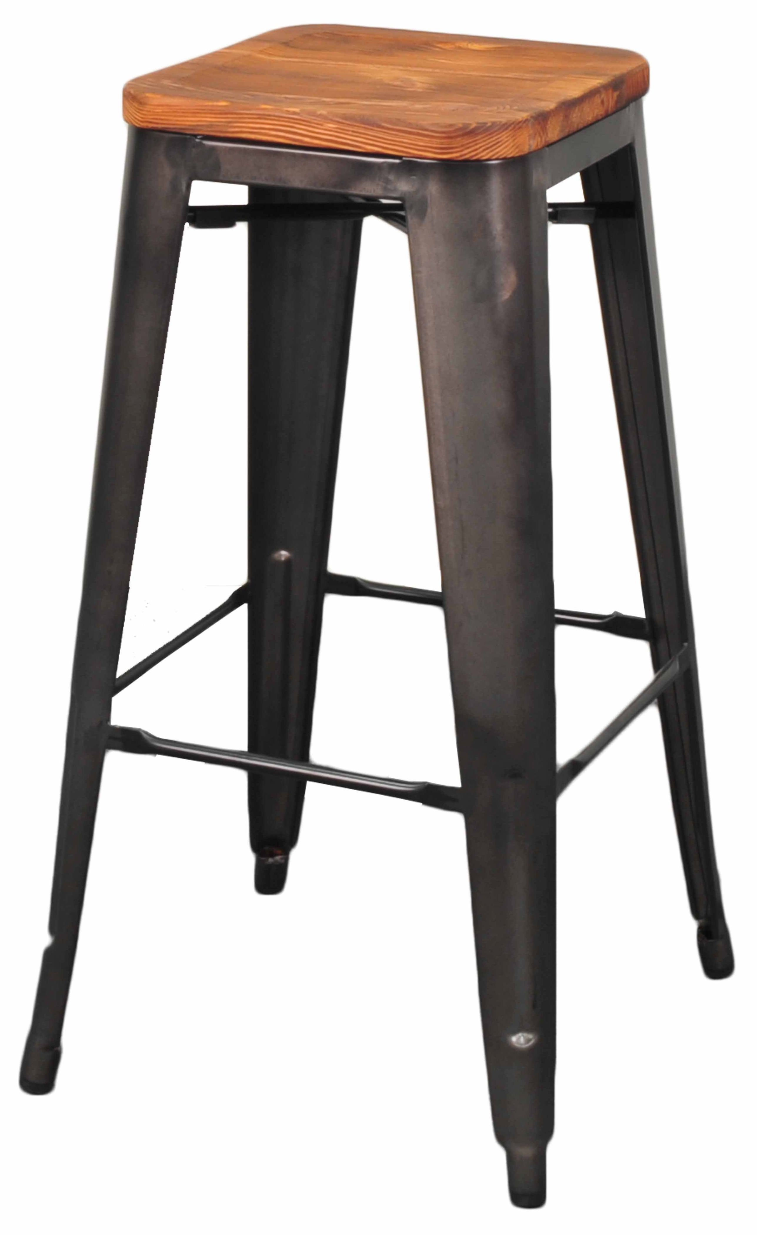 Metropolis Backless Bar Stool with Wood Top – A modern loft apartment would be the perfect place for this offbeat Metropolis stool, but it lends a retro flair to any dining area. Complete with a solid pine seat, you can pair this 30” high stool with our Metropolis Bar Table and recreate the feeling of a downtown brew-pub or favorite hang-out. Set of 4, fully assembled and stackable. Available in 2 colors.