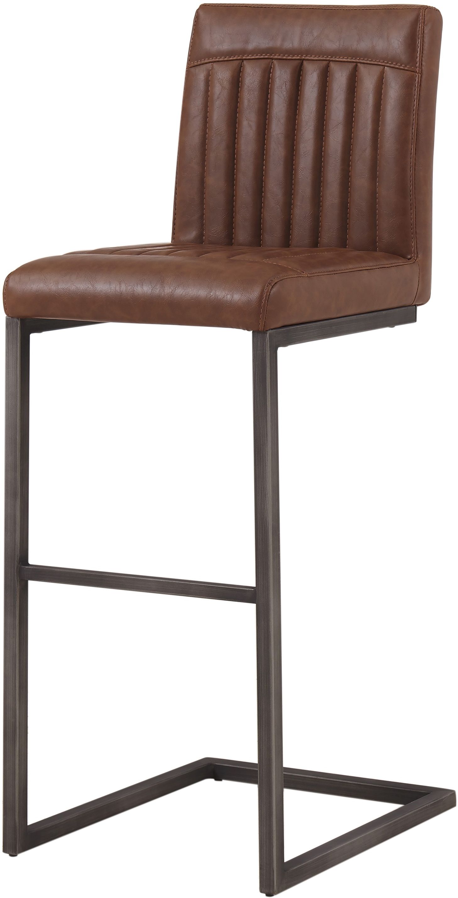 The Ronan barstool strikes a vintage, industrial pose and offers a profile that looks great viewed from any angle. A sturdy performer in a variety of settings, the cantilevered iron frame sports a Rubbed Gray finish paired with channel-tufted Antique Cigar Brown leather-like fabric on the back and sides.Read More