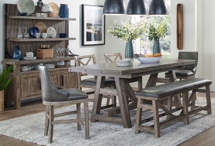 Cozy at heart, the Lodge Dining collection creates a getaway at home. Drawing inspiration from the natural simplicity of rustic cabin furnishings, these updated designs feature substantial proportions and strong profiles. A rich multi-tone finish in a mountain range-inspired color palette highlighted with iron-inspired accents gives Lodge its distinctive presence.Read More