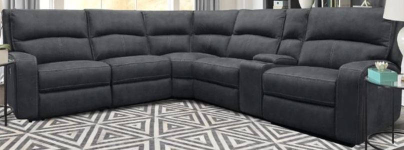 Includes: Power left arm facing recliner, manual armless recliner, corner wedge, armless chair, entertainment console with USB pop-up, power right arm facing recliner