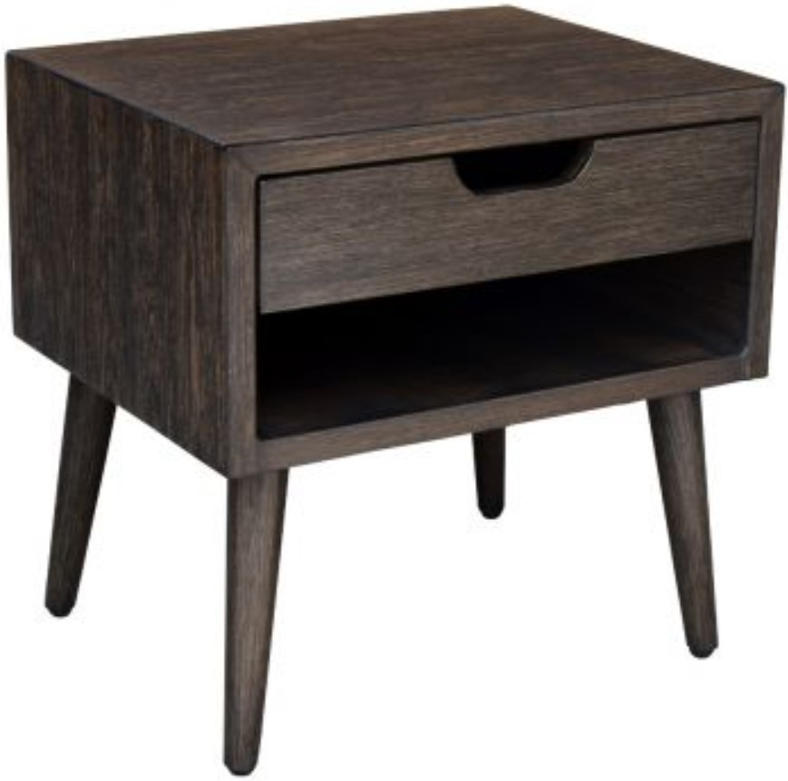 One spacious drawer and open compartments for organization.